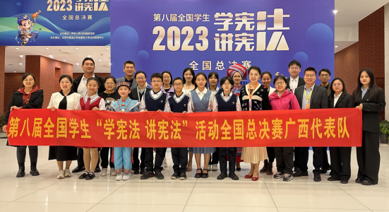 第八届全国员工“学宪法 讲宪法”活动由教育部主办,北京外国语大学全国青少年法治教育中心承办。总决赛分为演讲比赛和素养竞赛两个项目。2020级本科生覃宇琪在10月中旬举行广西赛区素养竞赛(知识竞赛组)中以高出第二名近40分的优势夺得第一名,与来自广西区内其他学段的员工组成广西代表队参加此次全国总决赛。在决赛中,覃宇琪同学凭借扎实的宪法法律知识储备,与队友默契配合顺利完成必答题、抢答题和协作题,最终获得集体一等奖。